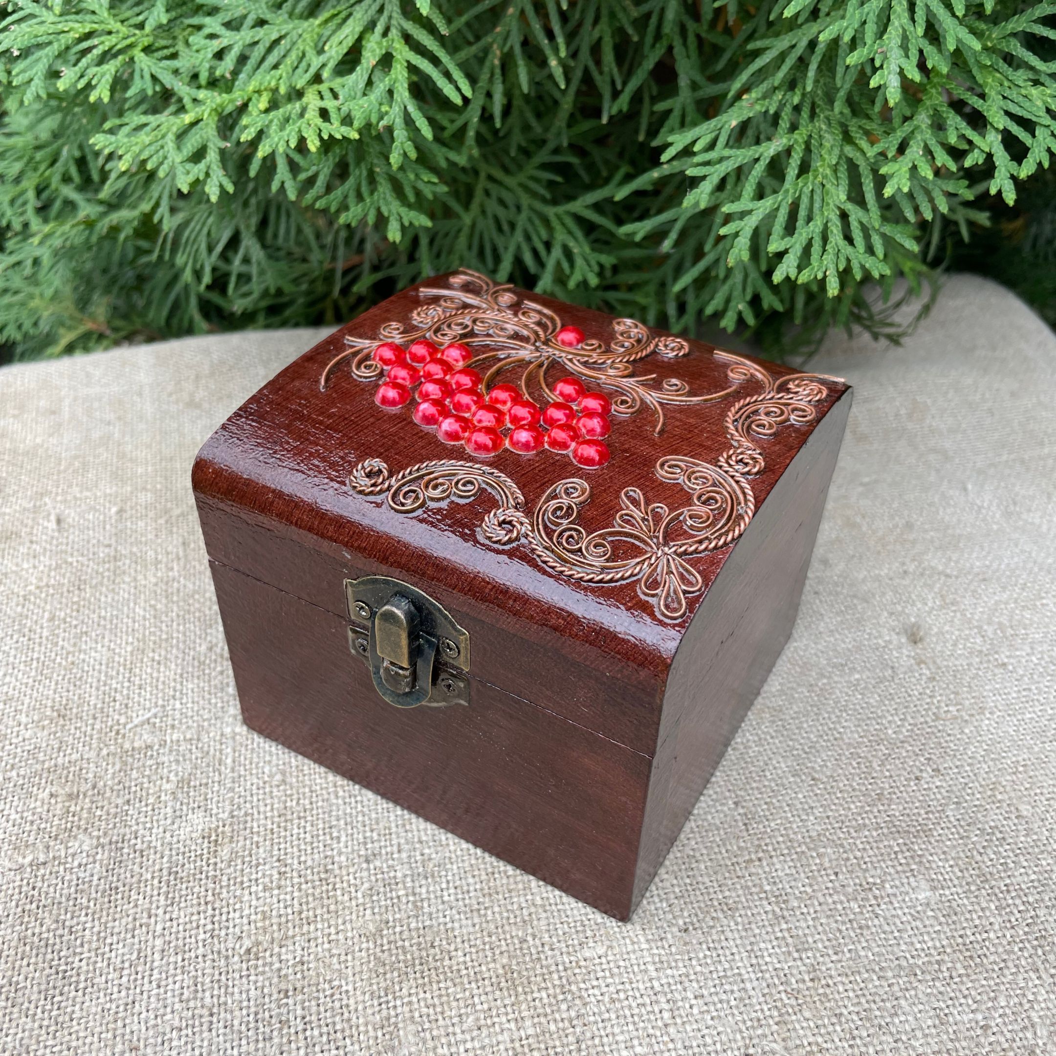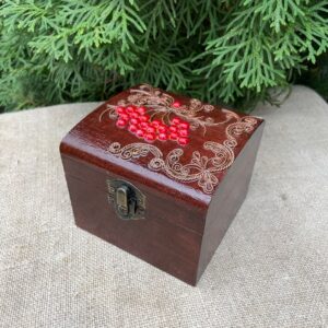 Дерев’яна шкатулка з мідним оздобленням “Калина №1” розміром 10х10х9 см
