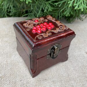 Дерев’яна шкатулка з мідним оздобленням “Калина №2” розміром 8х8х7 см