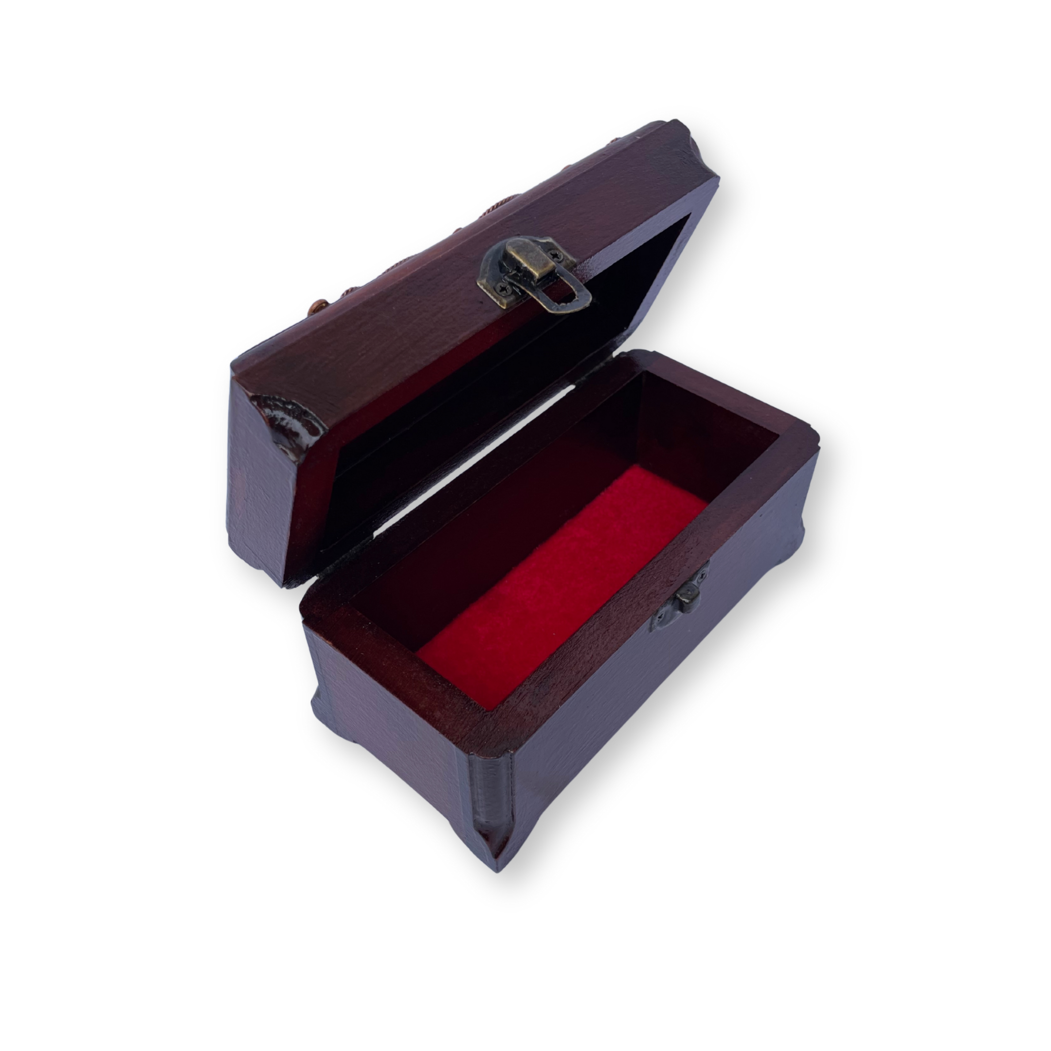 - Преміальні матеріали: Корпус виготовлено з натурального дерева, ретельно відшліфованого та вкритого стійким лаком. Внутрішня частина оздоблена м’яким оксамитом для дбайливого захисту ваших речей.