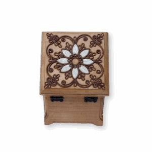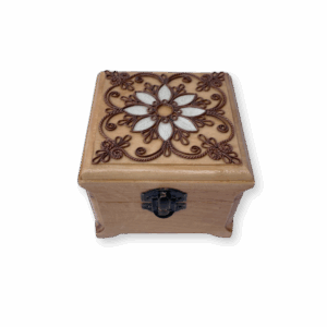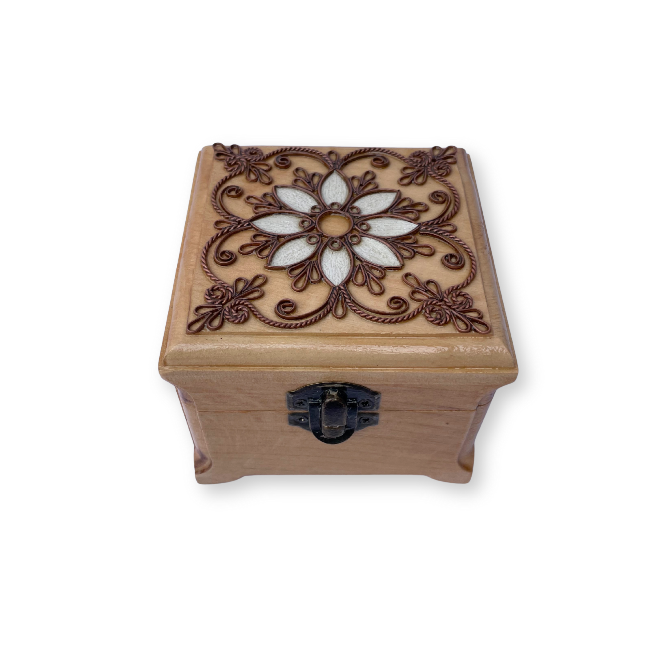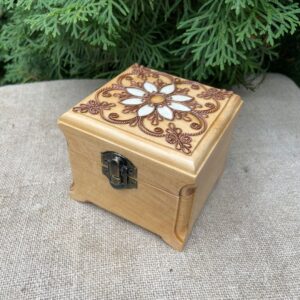 Дерев’яна шкатулка з мідним оздобленням “Ромашка №5” розміром 10х10х9 см
