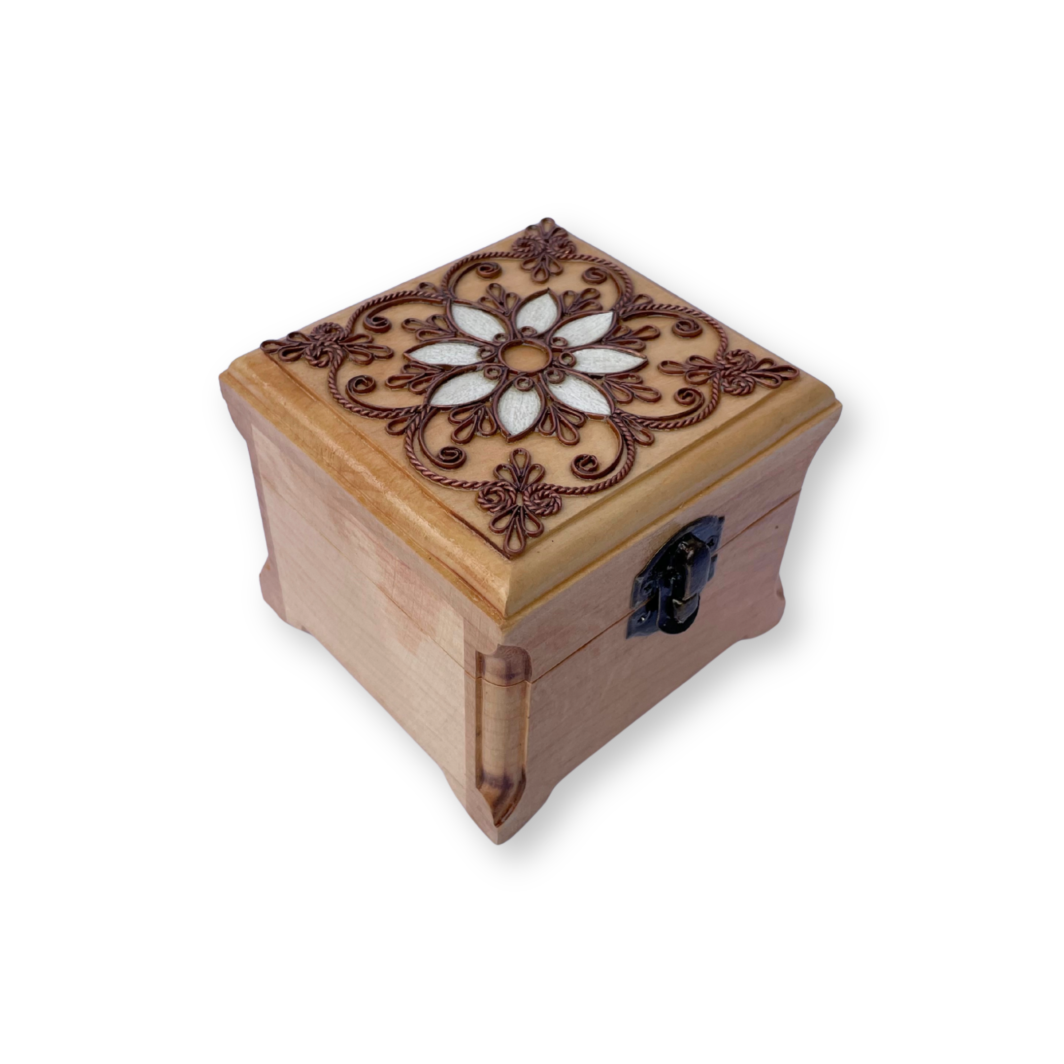 Дерев'яна шкатулка з мідним оздобленням "Ромашка №5" розміром 10х10х9 см